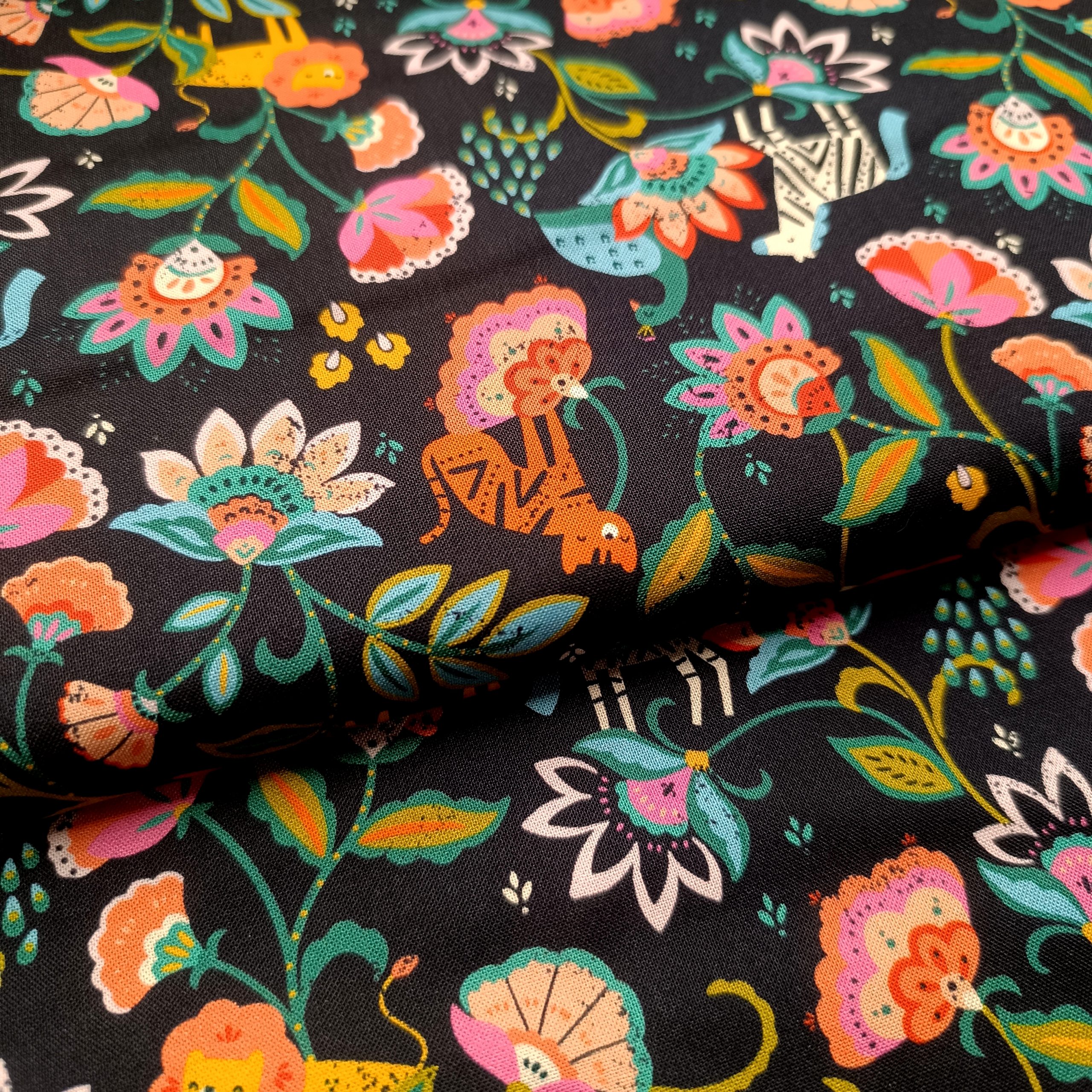 Tissu coton – Dashwood – Zèbres chat et fleurs